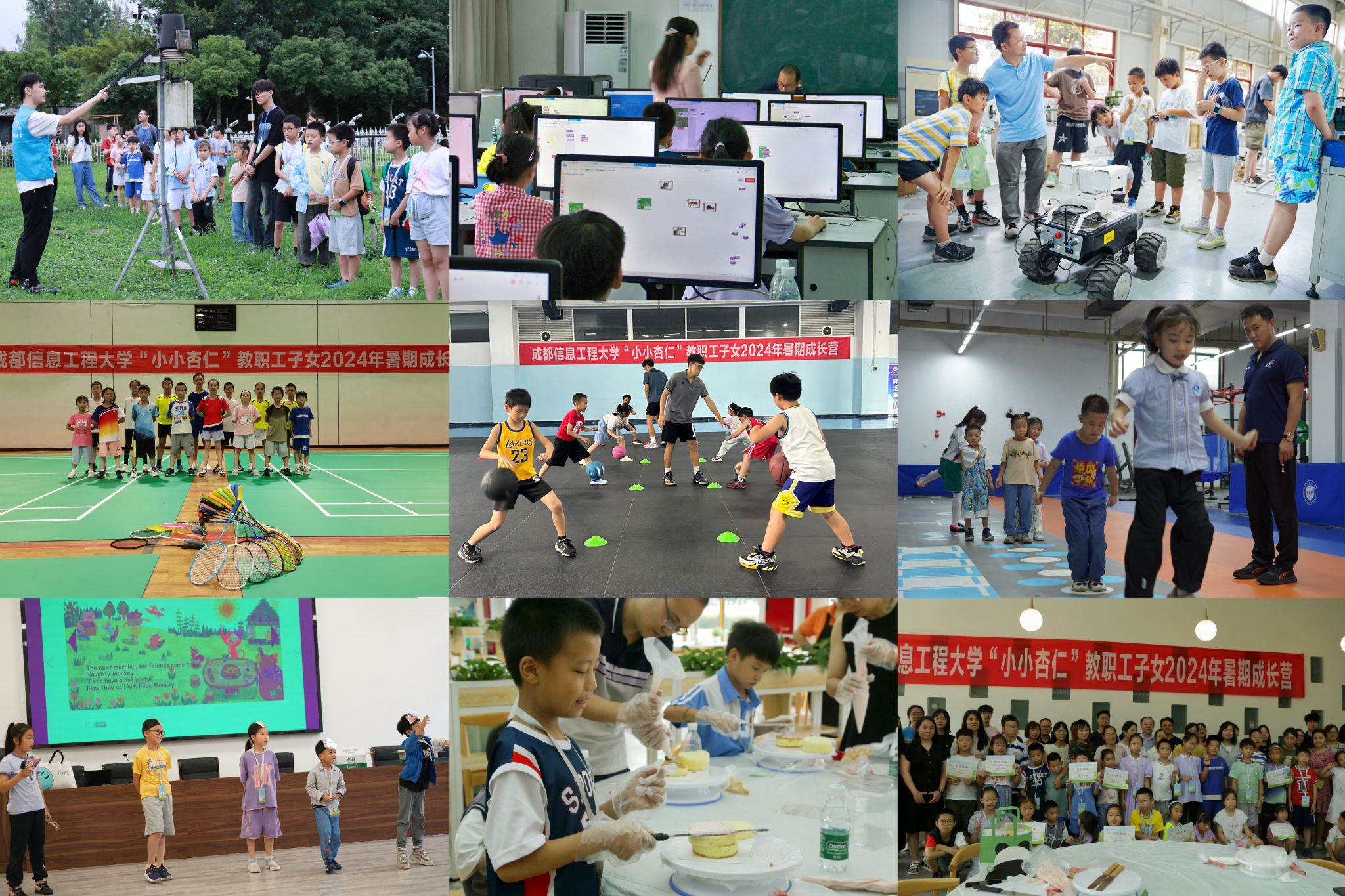 【本网讯】7月8日至7月12日期间,学校工会牵头举办了学校“小小杏仁”教职工子女2024年暑期成长营。学校体育部、后勤基建处、电子工程学院、软件工程学院、自动化学院等单位和老师积极参与、全力支持活动开展。